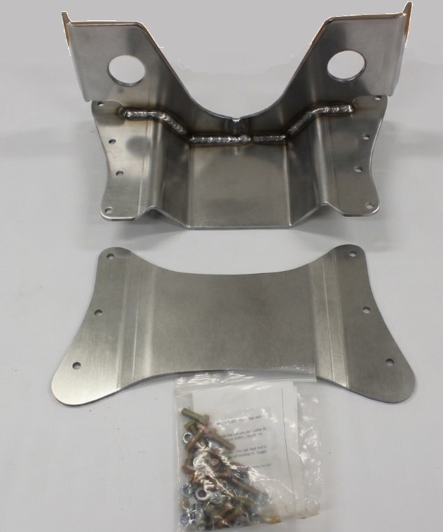This kit replaces the center part of X-member- no cutting of X-rails necessary. Uses some old rivot holes for line-up. Designed for Ford C-4 and Ford Flathead C4 transmissions. Can also be modified for other transmissions. Bolt-on unit gives 360 degree strength. Includes hardware and instructions.